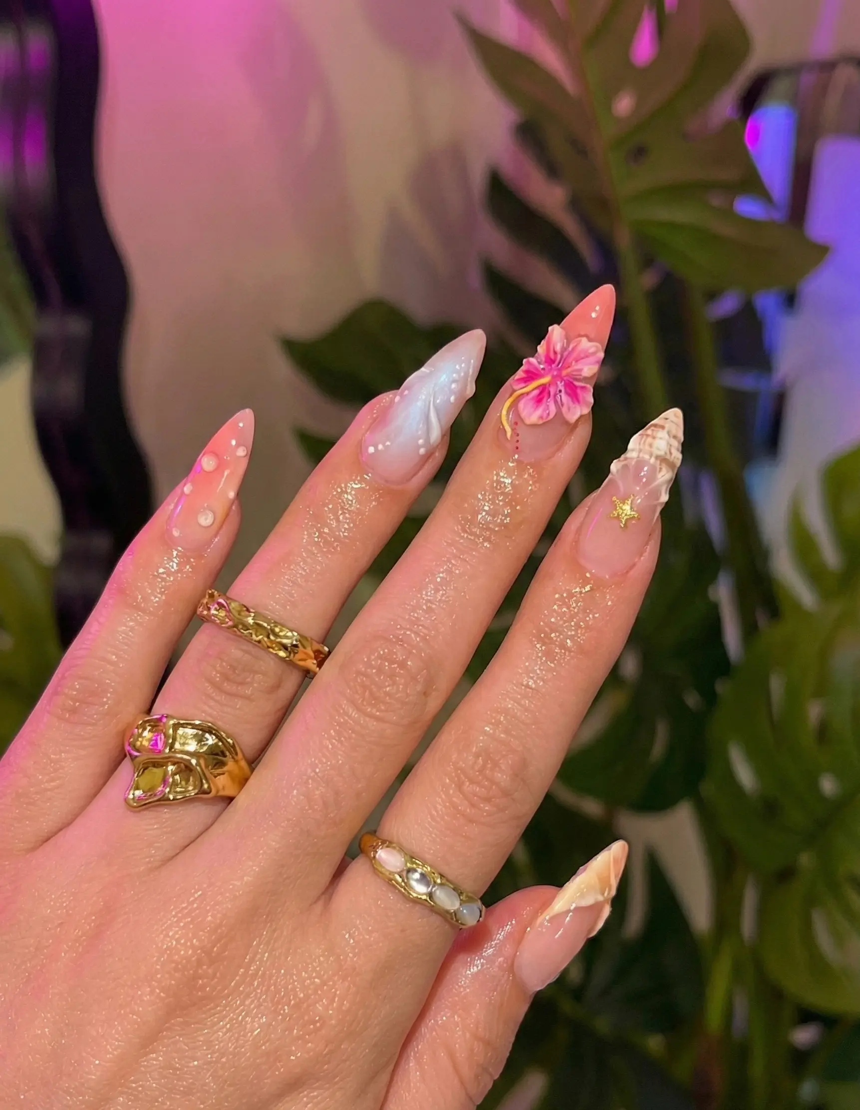 Stunning 3D Tropical Mermaid Nails With Hibiscus Flower And Seashells
